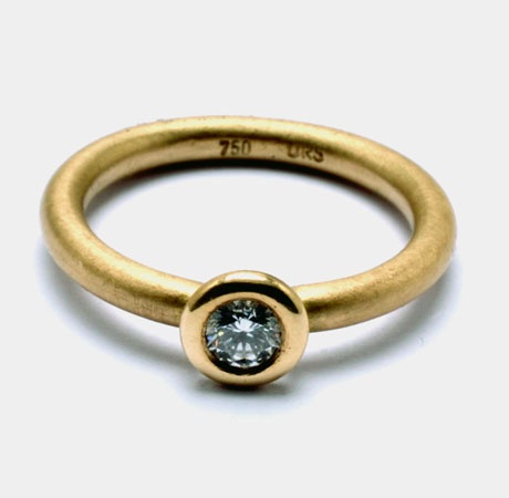 Dieser Solitär Ring aus Gold 750 hat einen Brillanten von 0,20ct in einer Rundöse gefasst. Diese Oese hat einen U förmigen Unterbau, um den Stein die notwendige Höhe zu geben. Durch diesen Höhenunterschied lässt sich dieser Ring gut neben einem anderen Ring tragen.