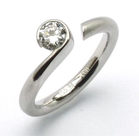 Dieser Platinring setzt durch seine klare Linienführung den Brillanten raffiniert in Szene. Wie selbstverständlich legt sich die Ringschiene um den Brillanten und hält diesen sicher