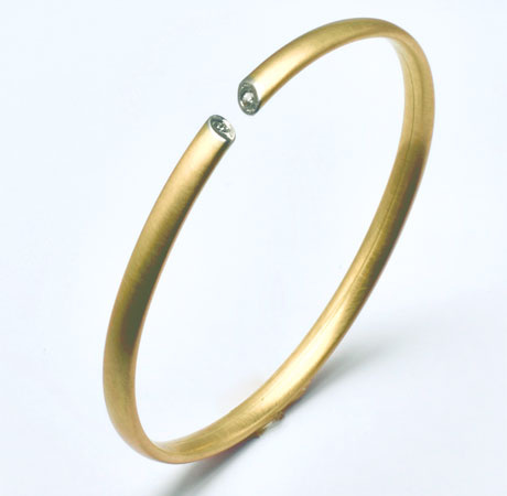 Dieser Reif ist durch die innenlaufende Fuge flexibel und einfach um das Handgelenk zu federn. Dadurch sitzt die Spange locker, ohne sich am Gelenk zu drehen.